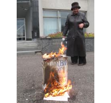 Сегодня сумские предприниматели провели акцию протеста против принятия Налогового кодекса и публично сожгли макет документа. Поддержать акцию пришло более ста человек. Как заявила руководитель Союза предпринимателей, арендаторов и собственников г. Сумы Светлана ИЧЕНСКАЯ, в народе Кодексу Азарова и Тигипко уже дали короткое название - «кат», то есть палач. «Новое правительство обещало нам налоговые каникулы, а вместо этого собираются поставить нас на колени», - возмущалась Светлана Иченская в мегафон. Руководитель Союза предпринимателей призвала сумчан присоединиться к всеукраинской акции 4 ноября: в этот день предприниматели со всех областей Украины планируют собраться под зданием Верховной Рады и требовать отмены кодекса.