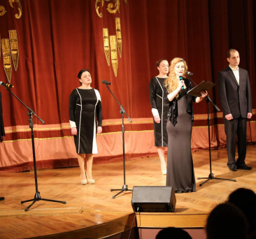 Ведущая Виктория Семеренко в начале концерта призвала почтить минутой молчания память Героев Небесной Сотни – наших мужественных соотечественников, которые отдали жизнь за свободу и независимость Украины. В исполнении вокального ансамбля «Элегия» звучала народная песня «Гей, пливе кача...» стала народным гимном памяти о погибших Героях Небесной Сотни.