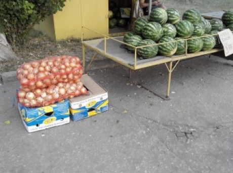 В минувшем сезоне практически все киоски решили самостоятельно разнообразить ассортимент предлагаемой продукции, и кроме разрешенных дынь и арбузов, взялись за торговлю лукоми картофелем.