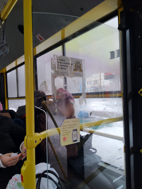 Картину завершшает отсутствие кондуктора. А вот возможность появления контроля на следующей остановке не отменяется. Так что за одну остановку пассажир должен попытаться отсканировать два кода, понять, что они не работают и пойти к водителю. Правда, над дверью есть маленькая работающая наклейка. Но неработающие коды - больше и удобнее, так что до исправного пассажир, скорее всего, доберётся в последнюю очередь.