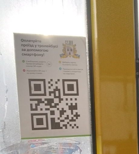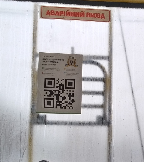 мы писали о троллейбусе №057, на задней площадке которого не работают практически все QR-коды. Сегодня наш сотрудник опять попал в эту же машину. Оказалось, что за три недели ситуация... никак не изменилась. Оборванную наклейку, которую мы впервые увидели ещё осенью, конечно, не поменяна. Остались на месте и целые наклейки, работающие на вид. Но, если их отсканировать, Приват24 выдаёт ошибку. Никаких пометок о том, что код не работает, тоже нет.
