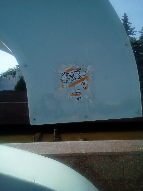 На одной из букв висит какая-то наклейка с перечёркнутой свиньёй. Была ли это просьба "не свинячить" или, опять-таки, вандализм, уже не понять.