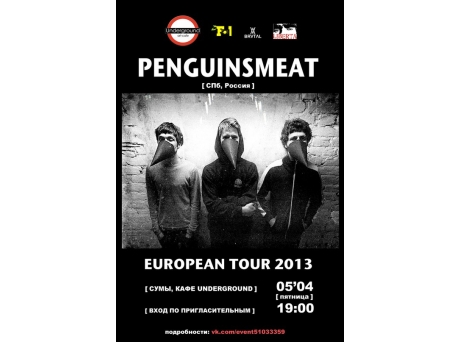 Арт-кафе Underground 5 апреля в пятницу в 19-00 выступит группа Penguinsmeat - инструментальное трио из Санкт - Петербурга. Композиции этой команды не имеют жестких стилистических границ и не заключены в рамки каких либо музыкальных направлений.