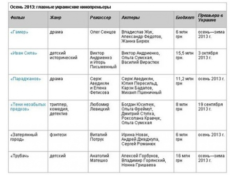 Но это только начало. До конца 2013 года ожидается еще 6 украинских кинопремьер.