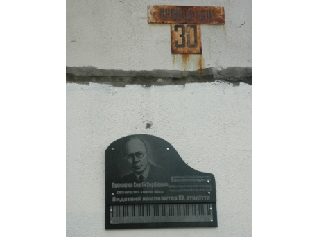 22 апреля на ул. Прокофьева установили памятную мемориальную доску, посвященную композитору. Как сообщил на аппаратном совещании в мэрии главный архитектор города Владимир БЫКОВ, это первая доска в Сумах, установленная по принятому регламенту. Инициатива ее установки принадлежит депутату Сумского горсовета Владимиру ДИХТЯРЮ. Он поблагодарил за содействие директора КП «Дорремстрой» Александра ВЕГЕРУ и директора КП «Сумыжилье» Евгения СТЕПАНЕНКО.