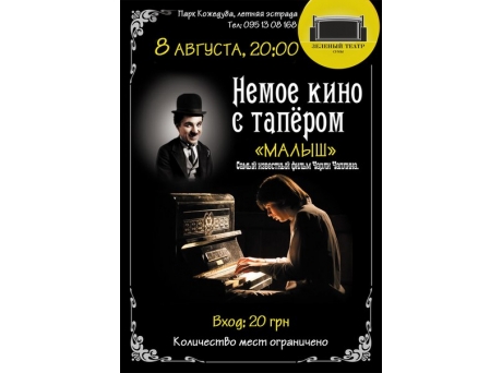 В пятницу, 8 августа, в Зеленом Театре (экс-летняя эстрада в городском парке им. И.Кожедуба) покажут фильм несравненного Чарли Чаплина «Малыш».