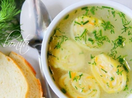 4. В бульон добавляем наши сырные рулетики. Варим 10 минут на медленном огне, чтобы избежать развариванию рулетов. Морковку пассеруем на растительном масле и добавляем в кастрюлю с супом.