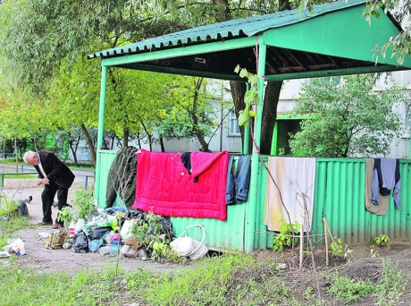Летнюю беседку рядом с детской площадкой на улице Черепина в Сумах оккупировал интеллигентный бомж.