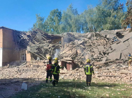 О 10:05 зазнало удару з повітря місто Ромни: російський безпілотник влучив у будівлю школи, повністю знищивши її. За первинними даними, загинули двоє вчителів, чотири людини дістали поранення.
