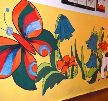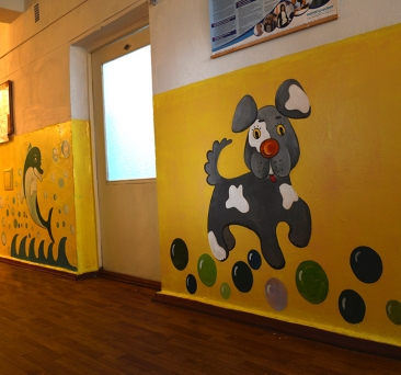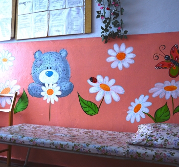 Талантливые и креативные художники создали в помещениях одной палаты, в приемном отделении, столовой и коридорах первого и второго этажа яркий и добрый мир сказки.