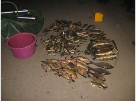 Около 23 часов на одном из блокпостов на выезде из Конотопа правоохранители совместно с Самообороновцами остановили подозрительный автомобиль. В машине сидели трое мужчин, жителей города. По внешним признакам стало ясно, что двое пассажиров находились в состоянии сильного алкогольного опьянения. На заднем сиденье автомобиля лежали удочки и подсака. При осмотре автомобиля милиционеры обнаружили подсак в водорослях, мокрую резиновую лодку, электроудочку и более 16 килограммов рыбы.