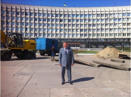 Епізод другий. Він на фото: стою на центральній площі, позаду будівля облдержадміністрації, а ще - екскаватор і машина теплокомунальників. Сьогодні зранку їм дали команду почати знімати бетонні плити на площі. До того було пару дзвінків до штабу опозиції від місцевих депутатів, цікавилися поміж іншим - чи буде Гриценко сьогодні скликати мітинг на тій площі? Наші відповіли: мабуть, буде:) Бо насправді я не збирався - зустрічі з людьми запланував у Лебедині й Охтирці. Але очевидно про всяк випадок площу почали "впорядковувати":) Коли я приіхав і запитав у працівників, що вони там роблять, відповіли: локалізація аварії в тепломережі... Перевірив: труба, яку розкопали під плитами, суха, ніяка вода не прорвала... Працівники зірвали плити і надалі сиділи тихенько в машинах. Доки ми не почали їх фотографувати на фоні "локалізаціі аварії" - потім, по команді, заревіли двигуни і машини виїхали з площі, подалі від "аварії":)