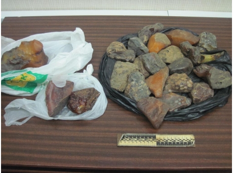 30 ноября в пункте контроля «Конотоп» во время осмотра поезда «Жмеринка-Москва» пограничники Сумского отряда и работники таможни обнаружили почти 4 килограмма необработанного янтаря.