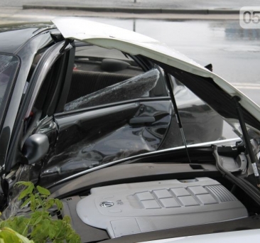 Машины Lexus ls 460 и Daewoo Lanos двигались в одном направлении по ул. Д.Коротченко в сторону Голубых озер. Между автомобилями произошло столкновение, обе машины выехали на встречную полосу и дальше на газон, где их остановил пень.