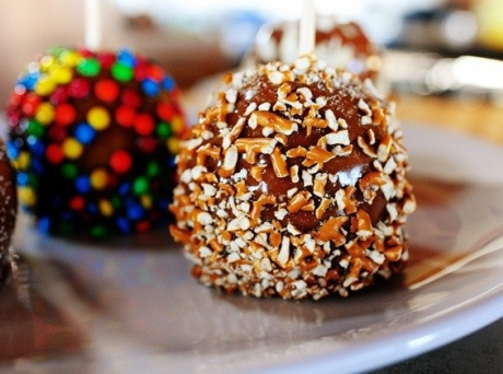 Яблоки моем,удаляем хвостик. Ириски ставим на водяную баню,вливаем молоко. Хорошо мешаем,что все конфеты растворились и добавляем ваниль и соль. Протыкаем яблоко палочкой в месте,где был хвостик. Затем выключаем плиту, но с бани карамель не снимаем. Погружаем яблоки в карамель. Затем выключаем плиту, но с бани карамель не снимаем. Погружаем яблоки в карамель. Затем в одну из выбранных присыпок. И выкладываем яблоки на пергаментную бумагу затем отправляем их в холодильник. Затем в одну из выбранных присыпок. И выкладываем яблоки на пергаментную бумагу затем отправляем их в холодильник.