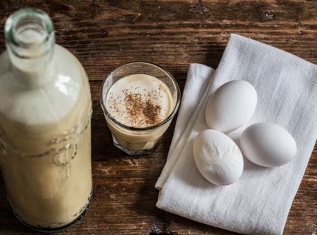 Процедите напиток через сито и перелейте в бутылку. Подавайте с мускатным орехом или щепоткой корицы.