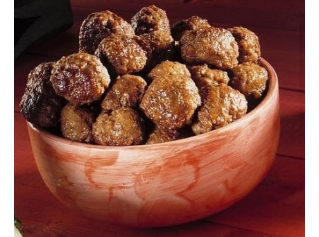 Жарьте тефтели на раскаленной сковороде с растительным маслом, обжаривая их со всех сторон до образования корочки. Периодически встряхивайте сковороду. Тефтели подаются с картофельным пюре или отварным картофелем и брусничным вареньем.