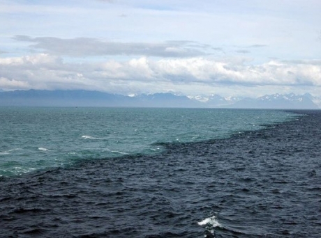 Два встречных течения в этом месте не могут слиться, так как у них разная плотность. Это место местные жители называют «край света».