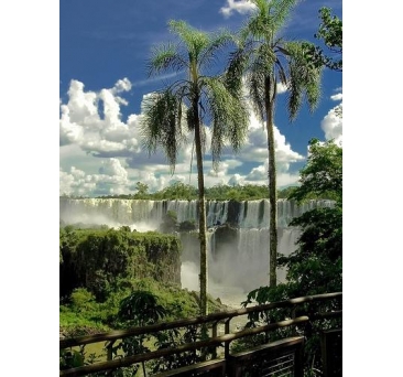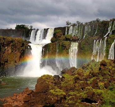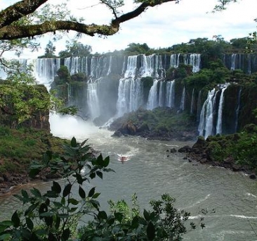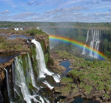 Водопады Игуасу — это комплекс водопадов на реке Игуасу, расположенный на границе Бразилии (штат Парана) и Аргентины (области Мисьонес). Водопады находятся на границе аргентинского и бразильского национальных парков «Игуасу». Название Игуасу происходит от слов на языке Гуарани: и (вода) и гуасу (большой). Легенда гласит, что Бог хотел жениться на красивой аборигенке по имени Naipu, но она сбежала со своим возлюбленным на каноэ. В гневе Бог разрезал реку, создав водопады, обрекая влюблённых на вечное падение. Водопады были открыты в 1541 г. испанским конкистадором доном Альваро Нуньесом Касесо де Вака, отправившимся в южноамериканские джунгли на поиски золота и приключений.