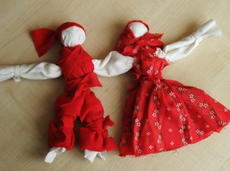 Из лоскута яркой ткани сделайте кукле сарафан, присборив ее по верху. Сарафан можно сделать на кружевных лямках и тем же кружевом обшить подол. Головку кукле можно повязать красивым лоскутком – платком или оставить ее «в девках» - с непокрытой головой. Посадите ее в укромный уголок, чтобы она оберегала ваш дом.