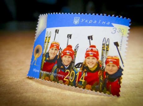 По случаю участия Украины в ХXII зимних Олимпийских играх в Сочи и стремясь поддержать женскую спортивную команду по биатлону Укрпочта совместно с Национальным олимпийским комитетом презентовала общественности почтовую марку «Сборная Украины по биатлону - 2014».