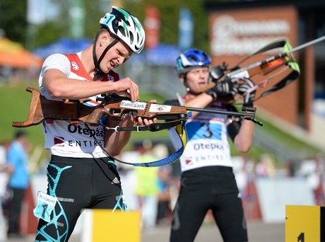 Уже в первой гонке летнего чемпионата Украины, который начался в Чернигове, отличился наш земляк. В спринте третье место занял Антон ДУДЧЕНКО. Он хоть и отстрелялся чисто, но на лыжне проиграл Сергею СЕМЁНОВУ 36 сек. Допустив один промах на втором огневом рубеже, лидер сборной Украины на 9 секунд опередил на финише Александра МОРЬЕВА, который также сделал один неточный выстрел. Четвёртым на этой дистанции стал ещё один уроженец Сумщины - Руслан ТКАЛЕНКО.