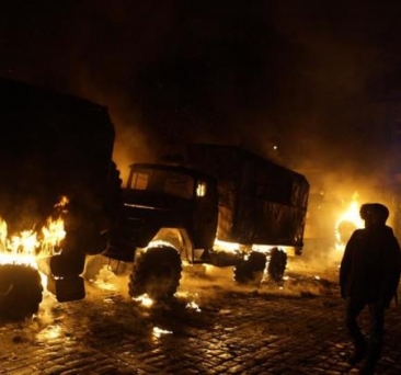 19 января, по состоянию на 23:30, активисты сожгли всю технику, которой перекрыта ул. Грушевского возле стадиона «Динамо» в Киеве. В это время догорели последний автобус и военный грузовой автомобиль для пассажирских перевозок.