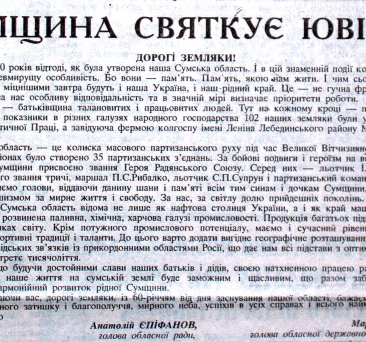 Ювілею Сумщини присвячується.