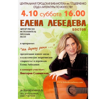 В суботу 4 жовтня в секторі мистецтв Центральної міської бібліотеки ім. Т.Г. Шевченко відбувся концерт Олени Лєбєдєвої (Бостон, США).